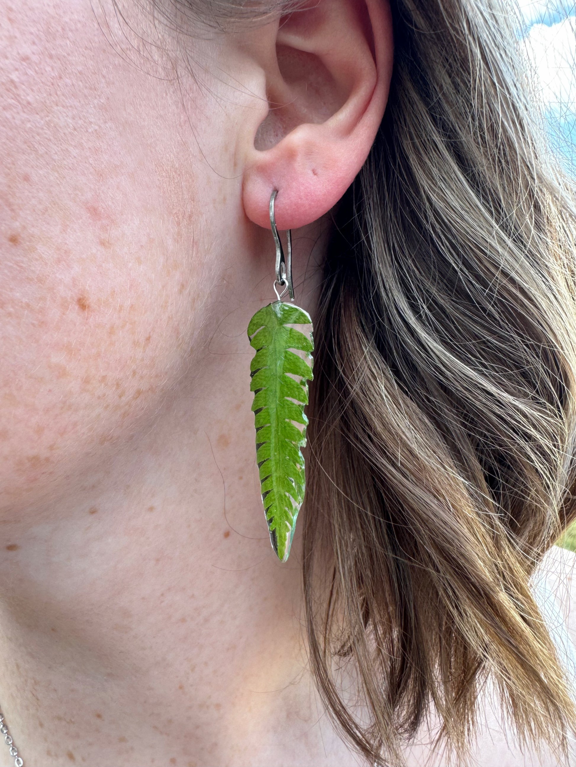 - This listing is for one set of preserved fern leaf earrings in our dangle hook style.