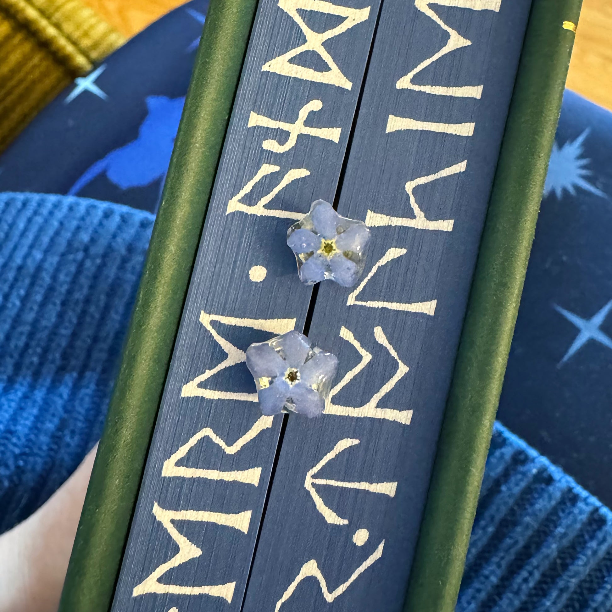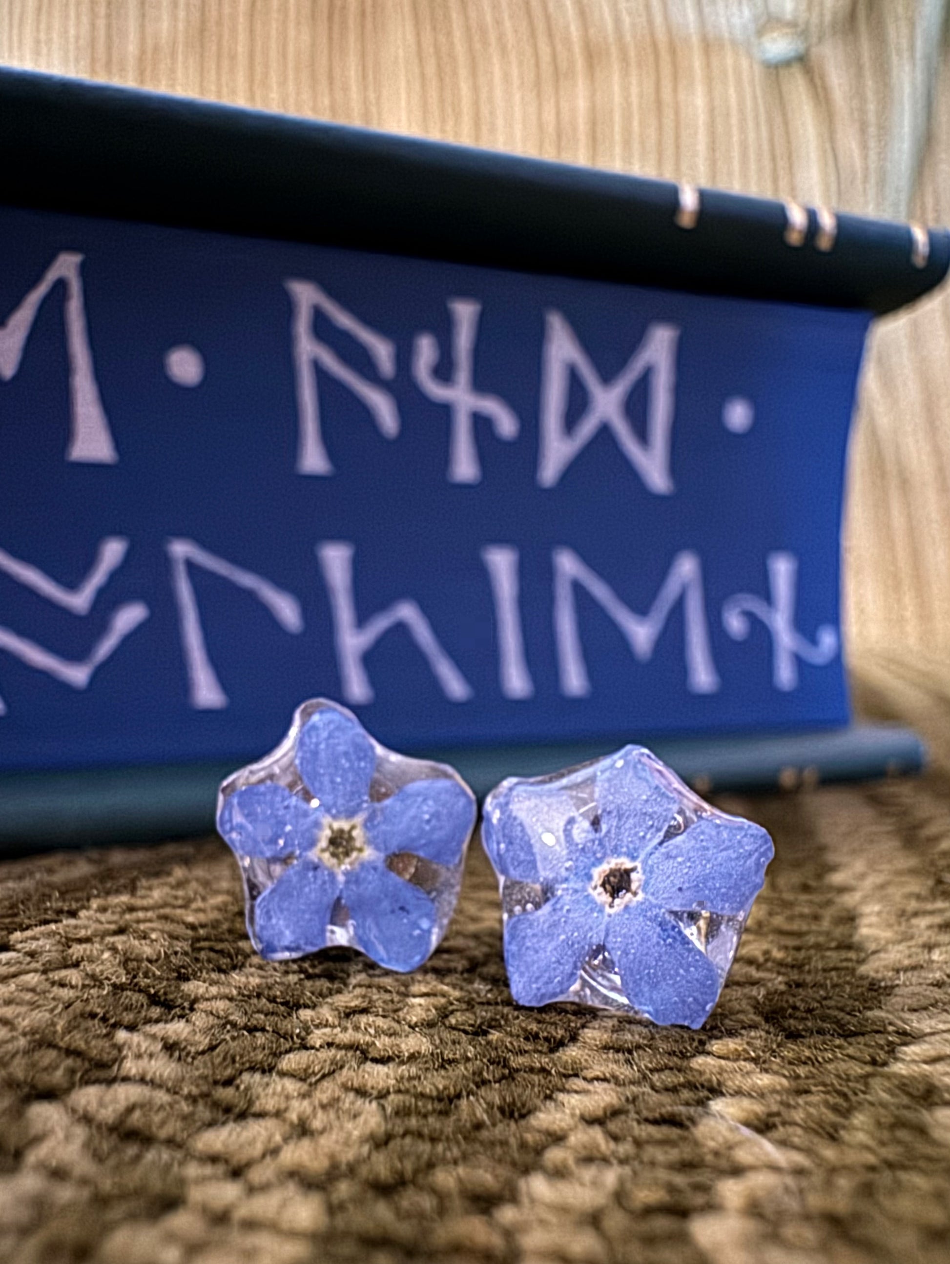 Homegrown and lovingly preserved these blue forget me not earrings are reminiscent of the star of Eärendil. A beautiful balance of elegance and simplicity, shining bright for all to see.