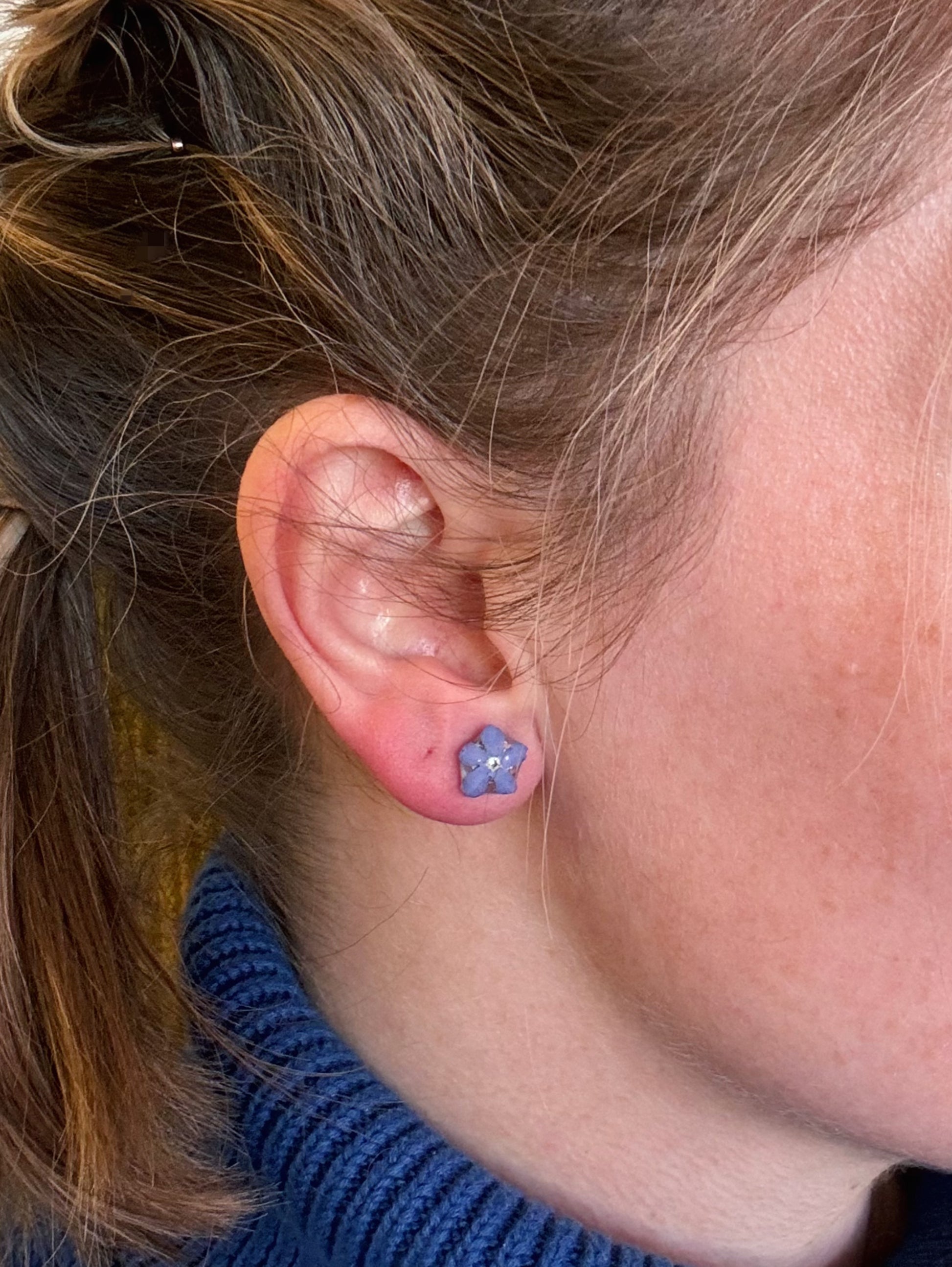 - This listing is for one set of preserved forget me not blossom earrings in our stud style.
