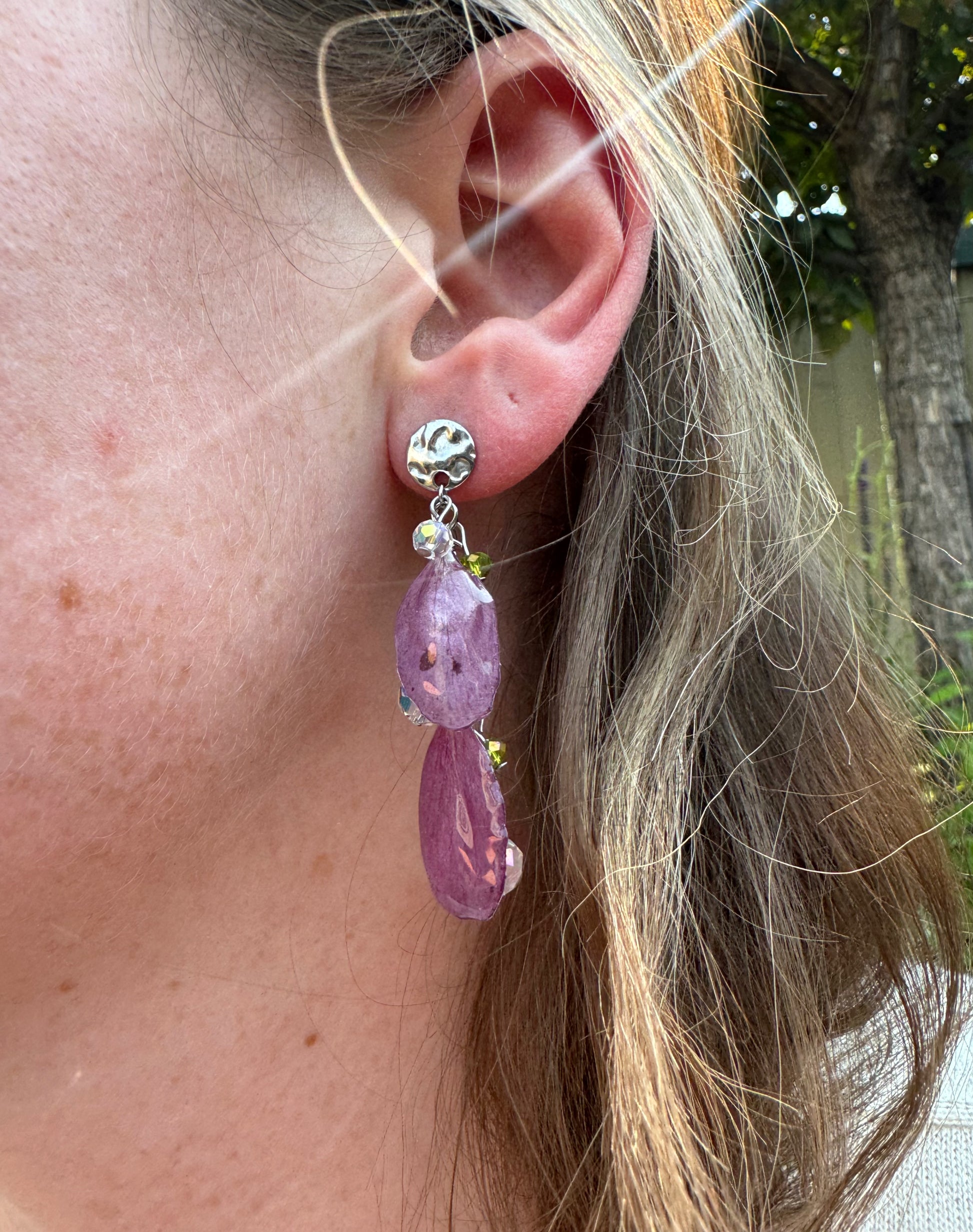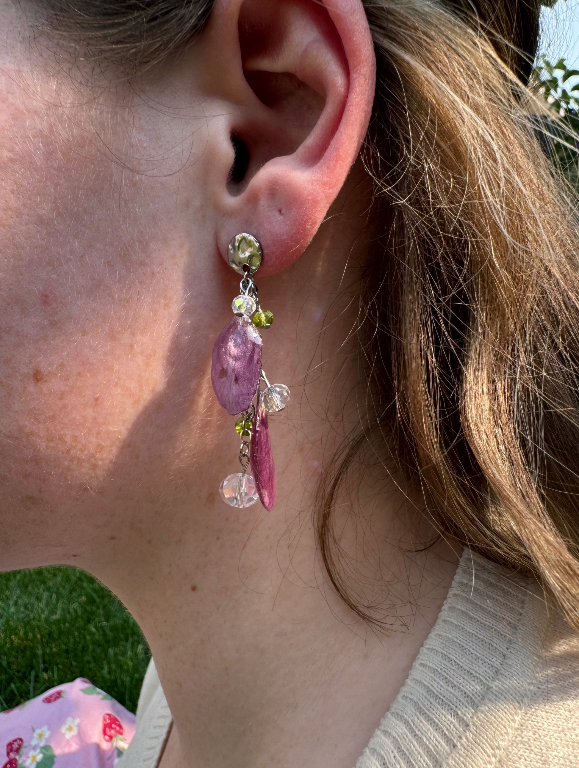 - This listing is for one set of preserved ornamental plum petal garden crystal earrings in our dangle style.