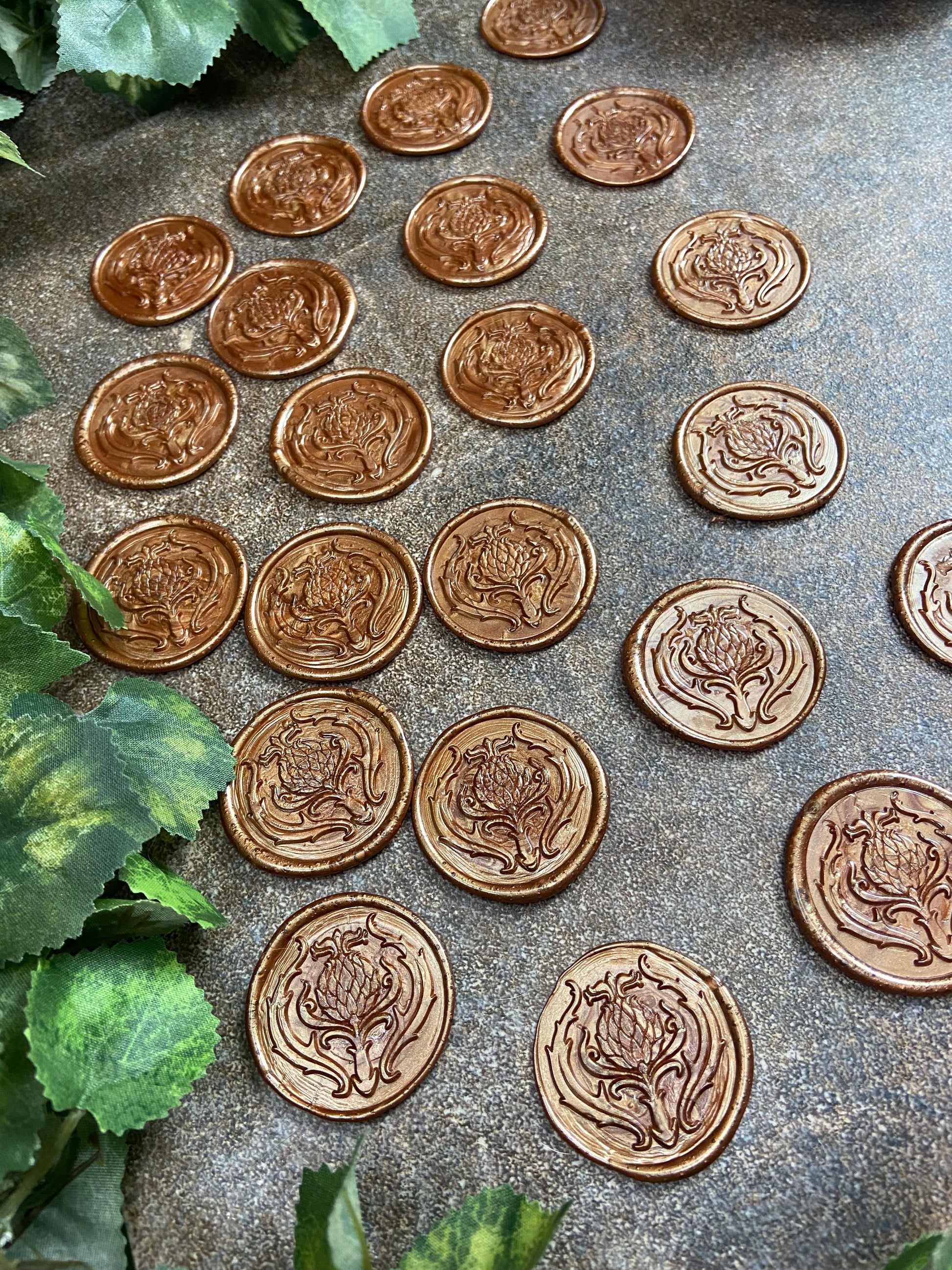 From the mesmerizing process of handpouring the wax, to hand stamping the wax seals with our custom designed thistle stamp, we endeavour to create unique seals, each one a whimsical addition to your next correspondence, invitation, or creative project.